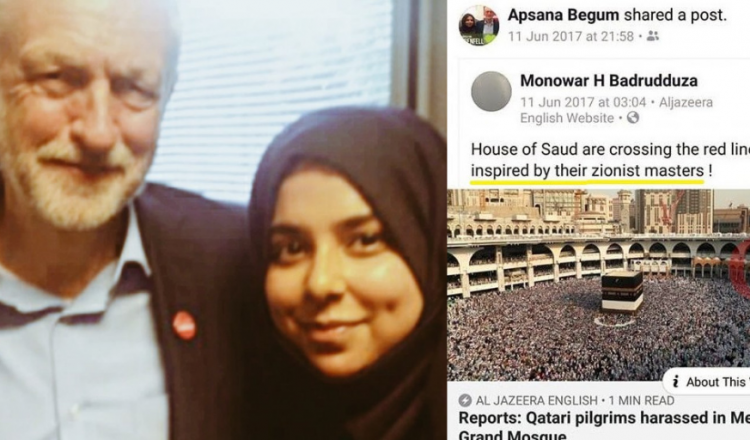 Momentum official Apsana Begum shared a post about the Saudi government’s “Zionist masters” and has now been elected to Labours London Regional Board.